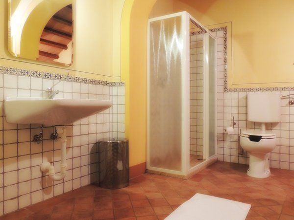 Apartment Girasole 105 m². 6 persons. Situated on the ground floor, facing 3 sides of the central U-shaped stone house of the resort, has got typical tuscan furnishings, private access, one large living/dining room with satellite tv and double sofa-bed (bookable at an extra price), with full equipped kitchen (4 hotplates, oven, dishwasher, fridge), three bedrooms (two with a double bed, one with two twin beds) two of them with exit on the terrace and one with exit on the courtyard, 1 bathrooms with bidet, shower and wc, 1 bathrooms with shower and wc, outdoor reserved table and chairs, gazebo on the back terrace. Independent heating.