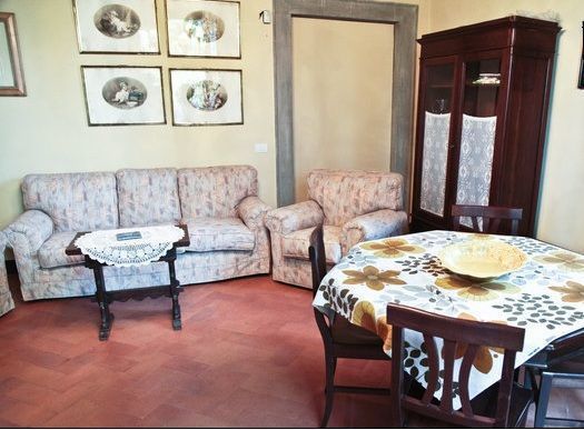 Ceiling beams, old terracotta floor and walls thicker than 50 cm as it is usual in this kind of old buildings. This ensures cool rooms even in the hottest summer.