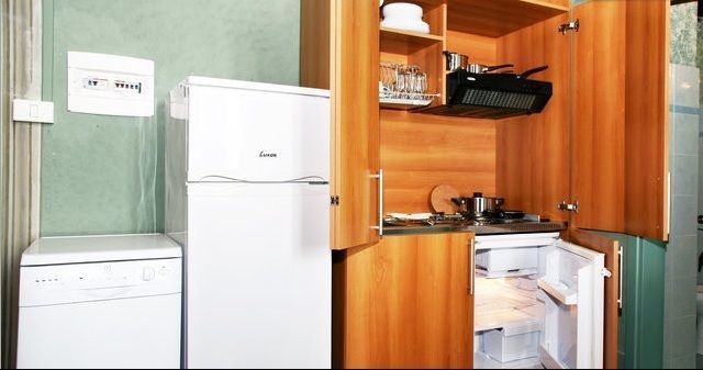 • Room / living room with double bed plus a comfortable double sofa bed and kitchenette including ample fridge with freezer and dishwasher