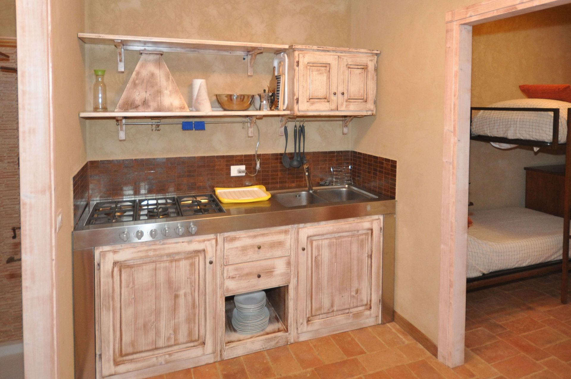 Ground floor: living room (LED satellite TV, hi-fi and blu-ray) with fireplace and double sofa bed, dining area with kitchen corner, double bedroom, bathroom with shower, bedroom with bunk beds.