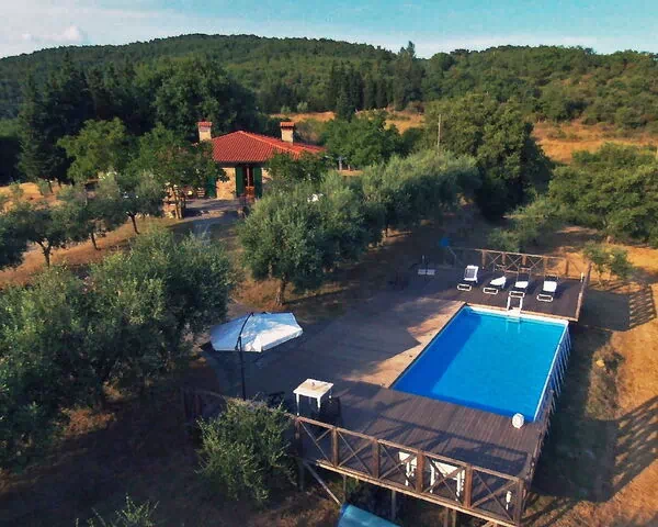 Independent house with private swimming pool located in a very scenic area in Valdichiana and surrounded by the countryside of Arezzo. Hectares of woodlands that circle the property ensure maximum privacy and a closeness with nature. The interior is in a rustic style. Outside, the guests can enjoy a private garden and a beautiful swimming pool with a great view and wooden solarium furnished with tables and chairs. Beside the swimming pool there is also a hot tub to enjoy.