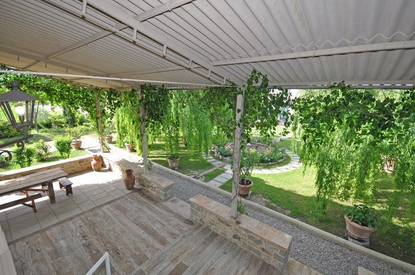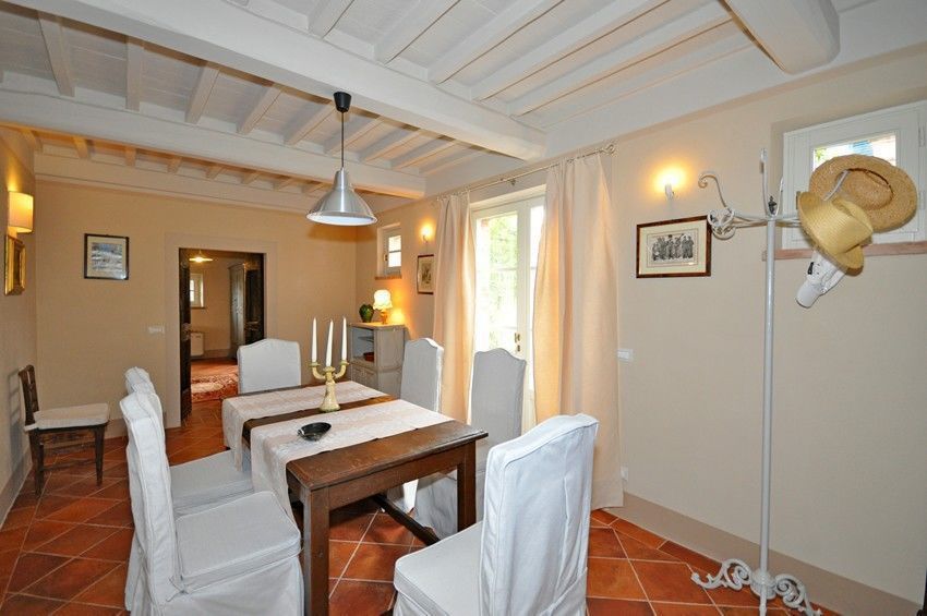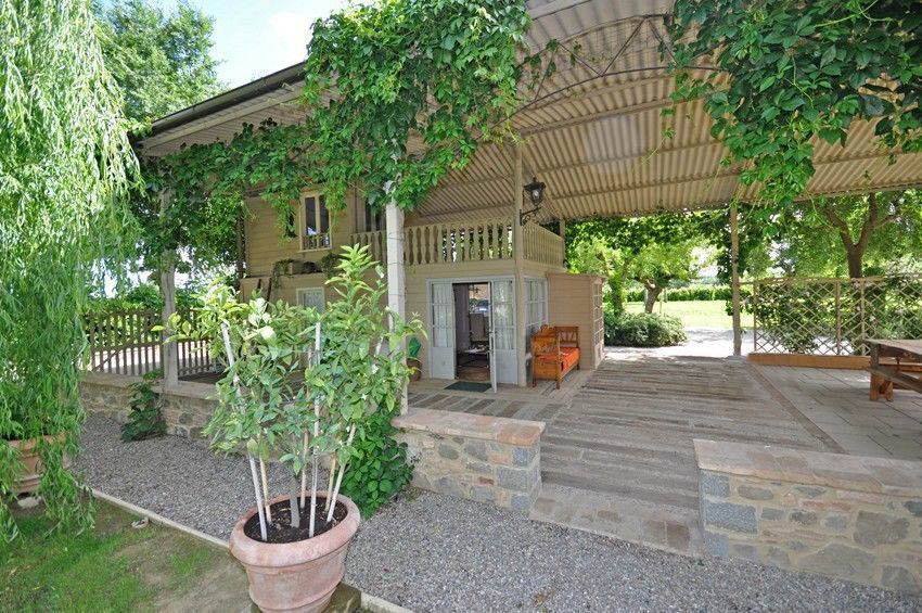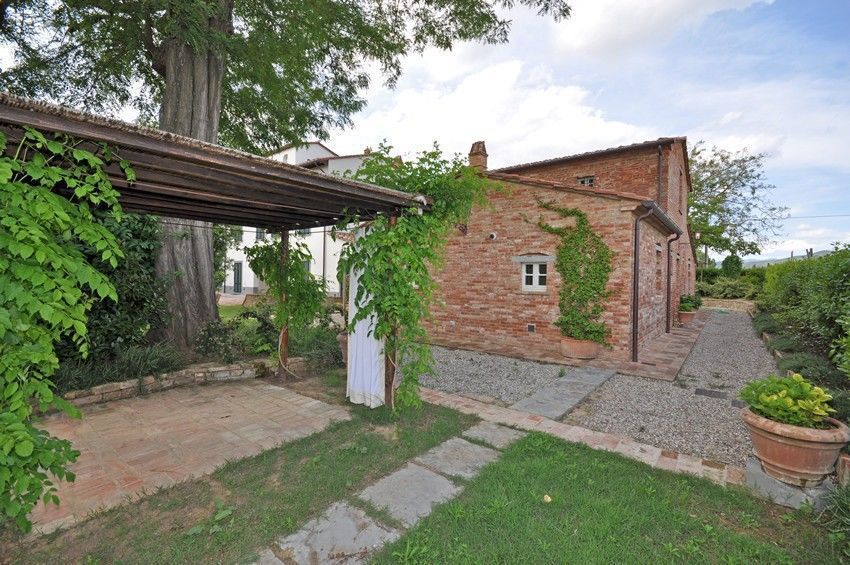Picture this, if you will: a pretty villa in a small town with the lush greenery of trees and views over the vineyards and rolling hills of the Tuscan countryside all around, a front entrance opening into a little court with flowers and trees, climbing blooms and vines winding up the sunny yellow facade of the villa, green shuttered windows, a romantic balcony on the first floor above the entrance, and a terracotta roof to top it off. This is the dreamy first encounter that guests have when they reach Villa Toppani Del Sodo and this very much sets the appropriate tone for your vacation here.