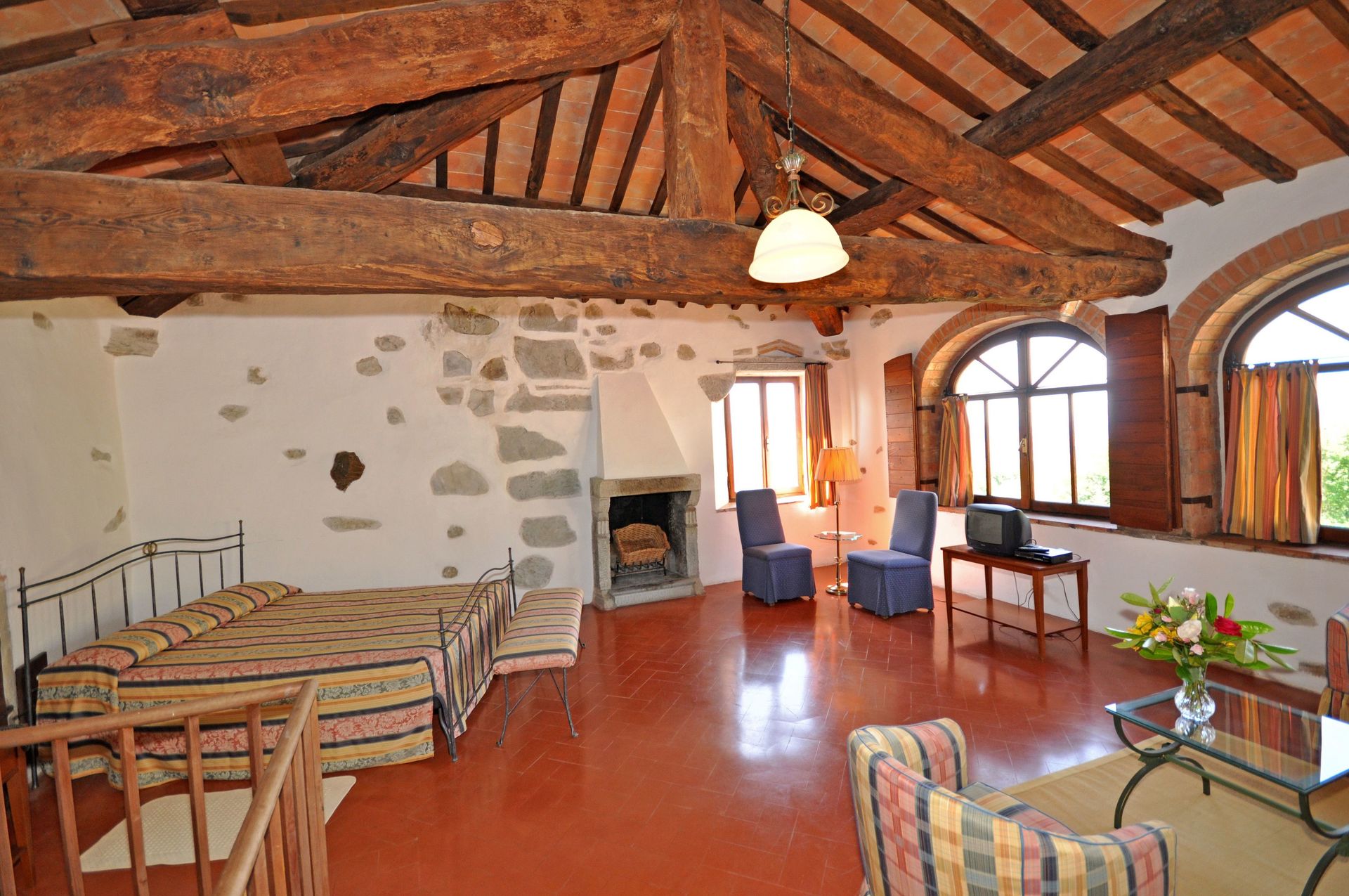 40 m2 1st floor: dining area with kitchen corner (oven, 2 electric plates), bathroom with bathtub (hairdryer). 2nd floor (in the tower): large suite with double bed, fireplace and living area (satellite TV).