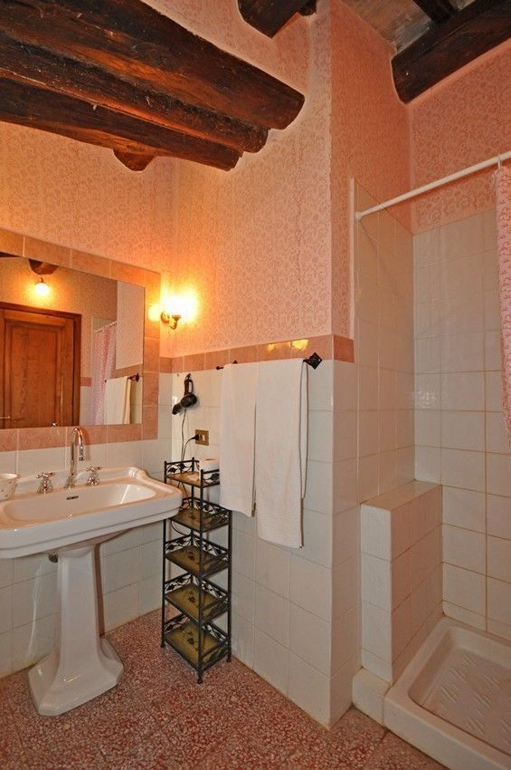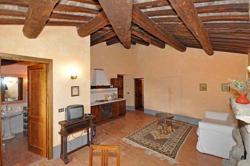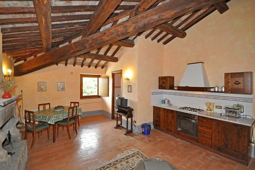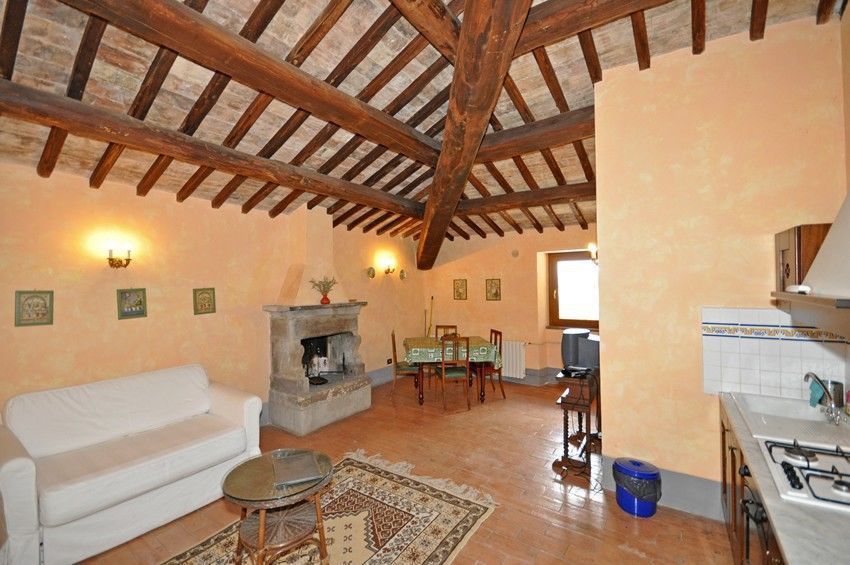 First floor: entrance onto living room (TV) with double sofa bed, fireplace, dining area and kitchen corner (oven, dishwasher, toaster, American coffee maker), double bedroom, bathroom with shower.