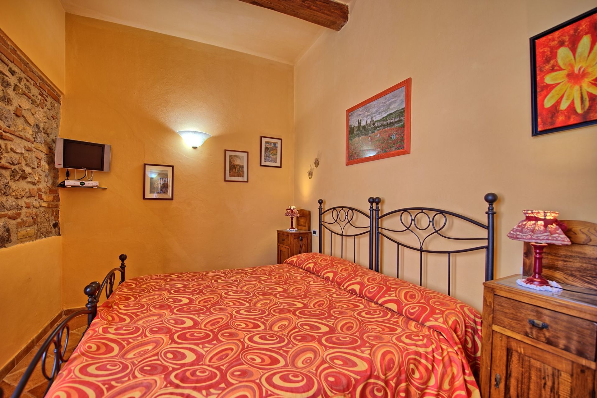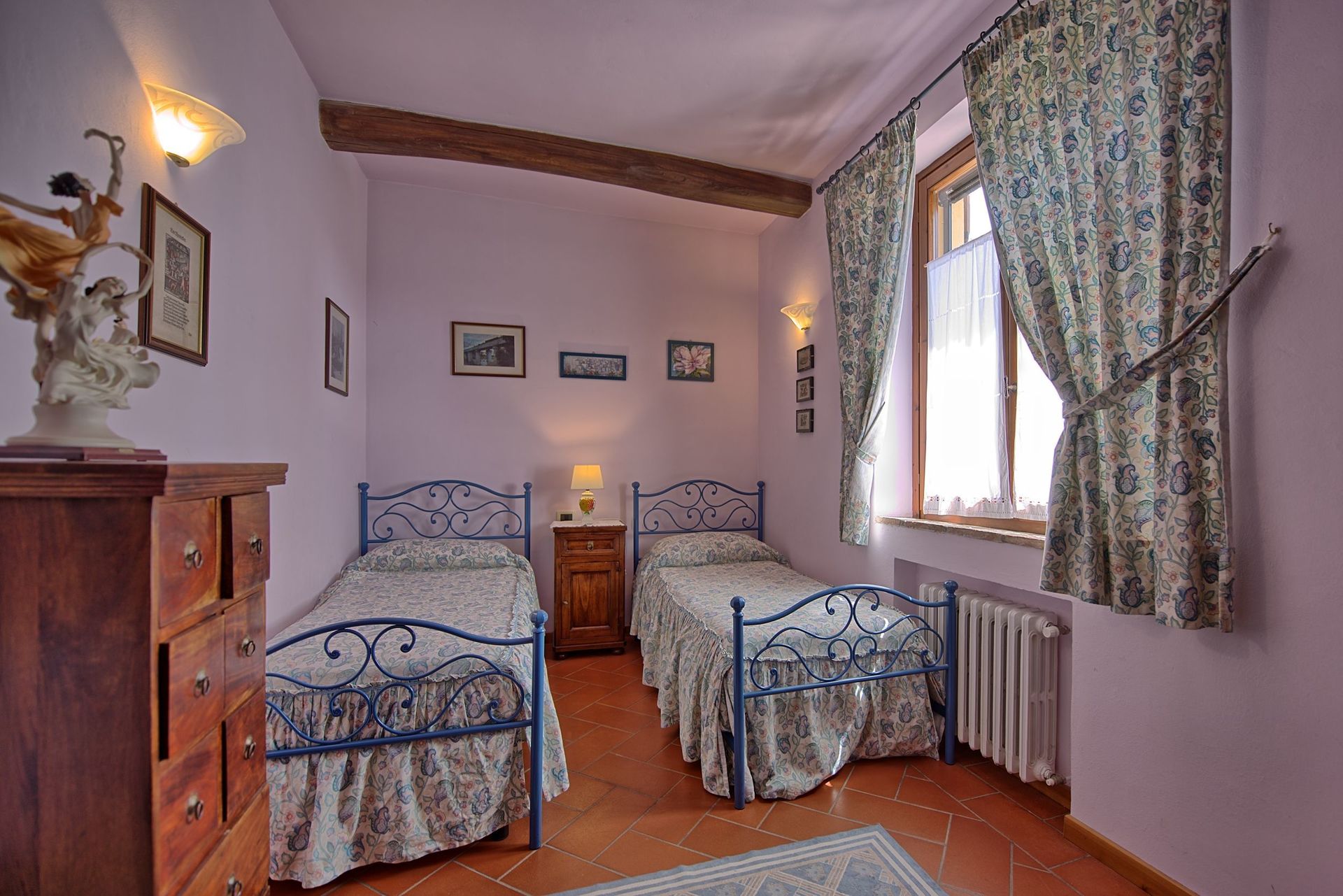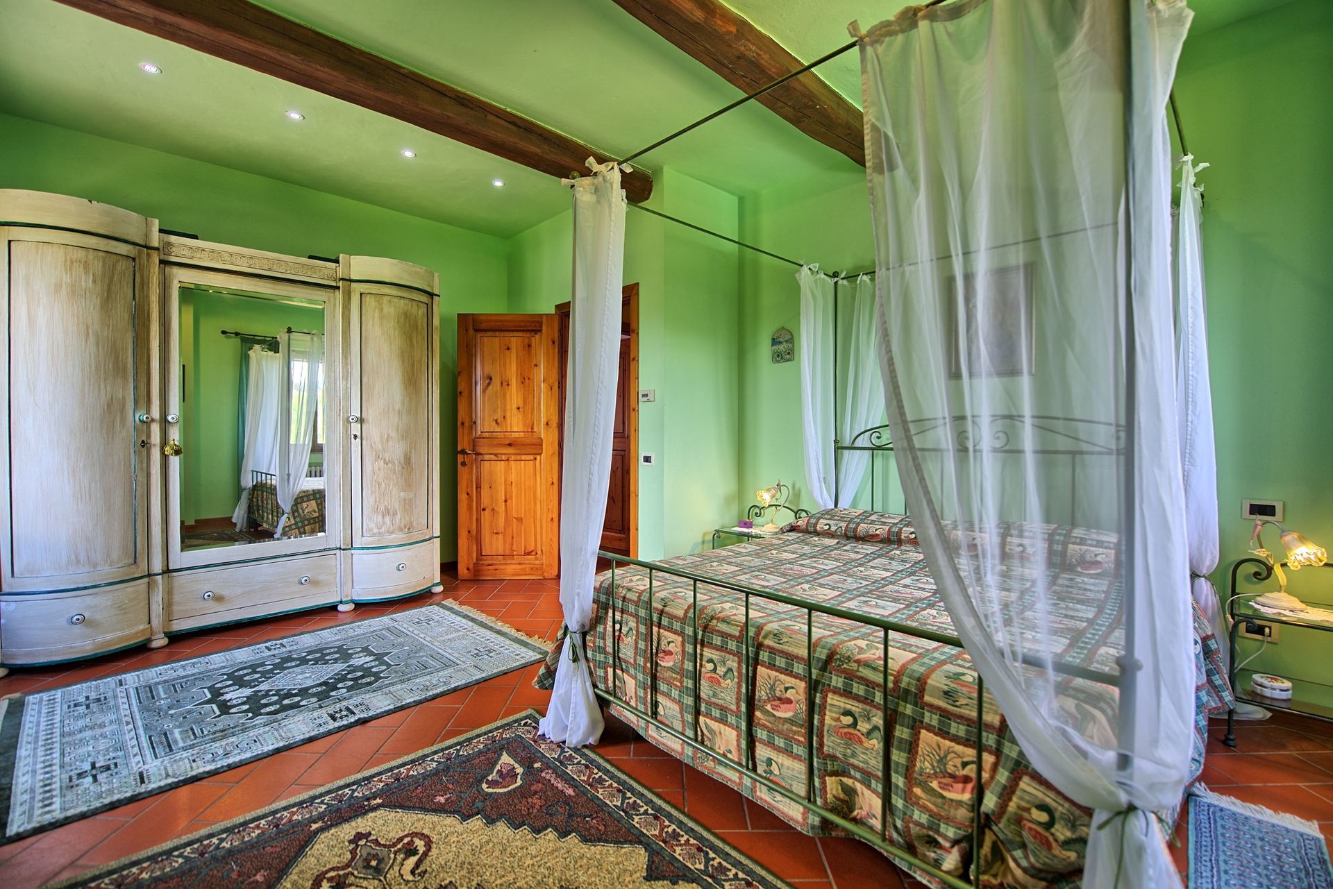 1st floor: double bedroom (satellite TV) with four-poster bed, twin-bedded room (satellite TV, convertible into a double bed), bathroom with bathtub and shower.