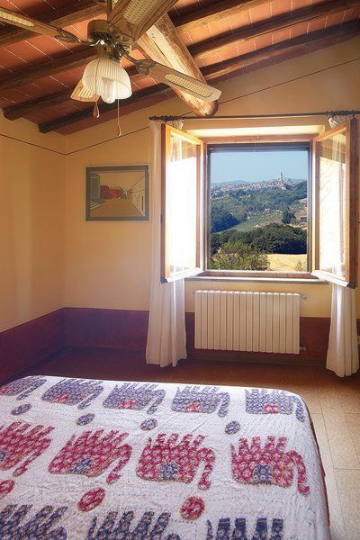 The views are outstanding, particularly the view of Siena in the distance and panoramic view of rolling hills with vineyards and olive groves.