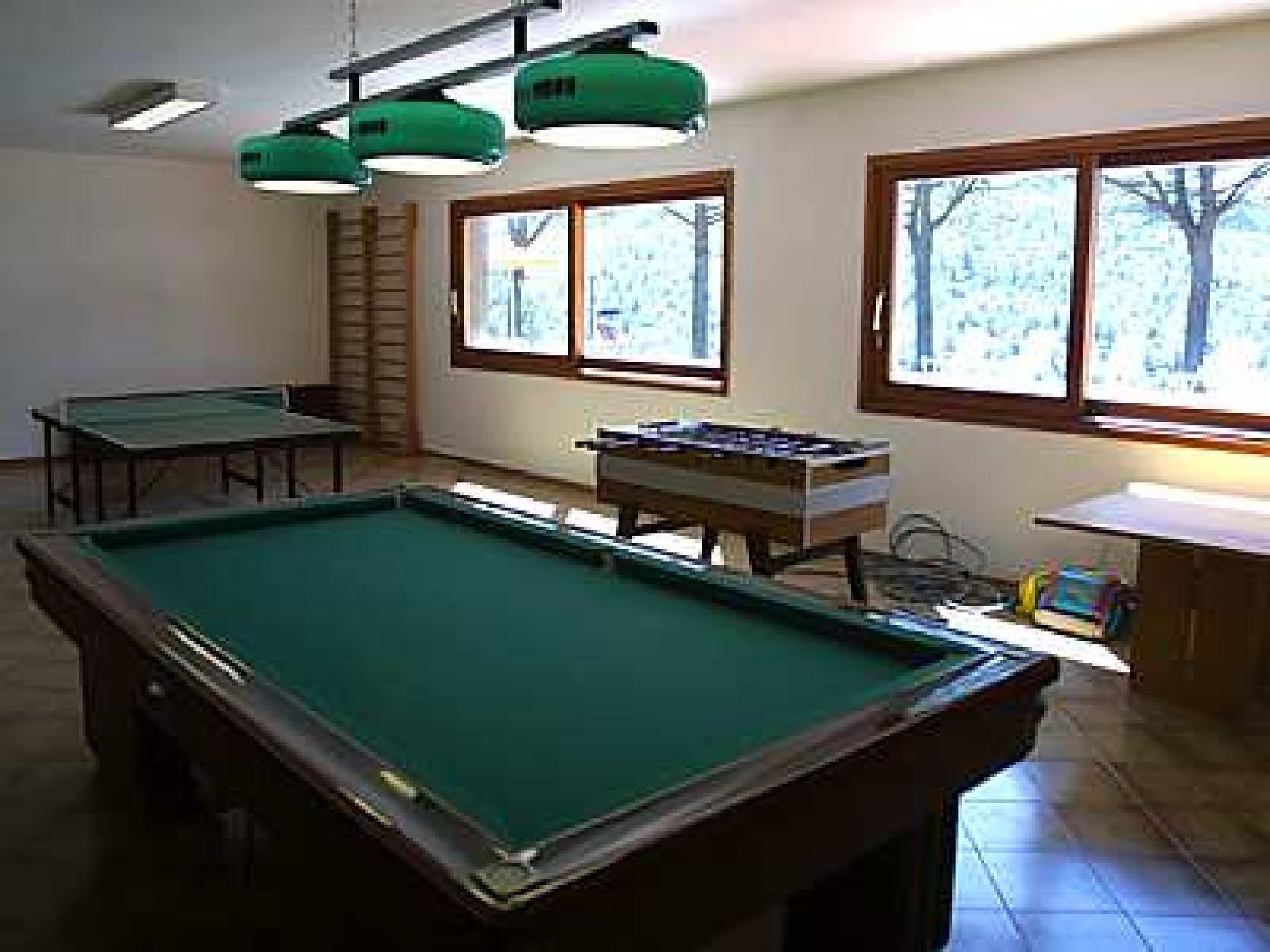 In the building next to the pool there is the entertainment room with table tennis, billiards, table football and a bathroom with shower.
