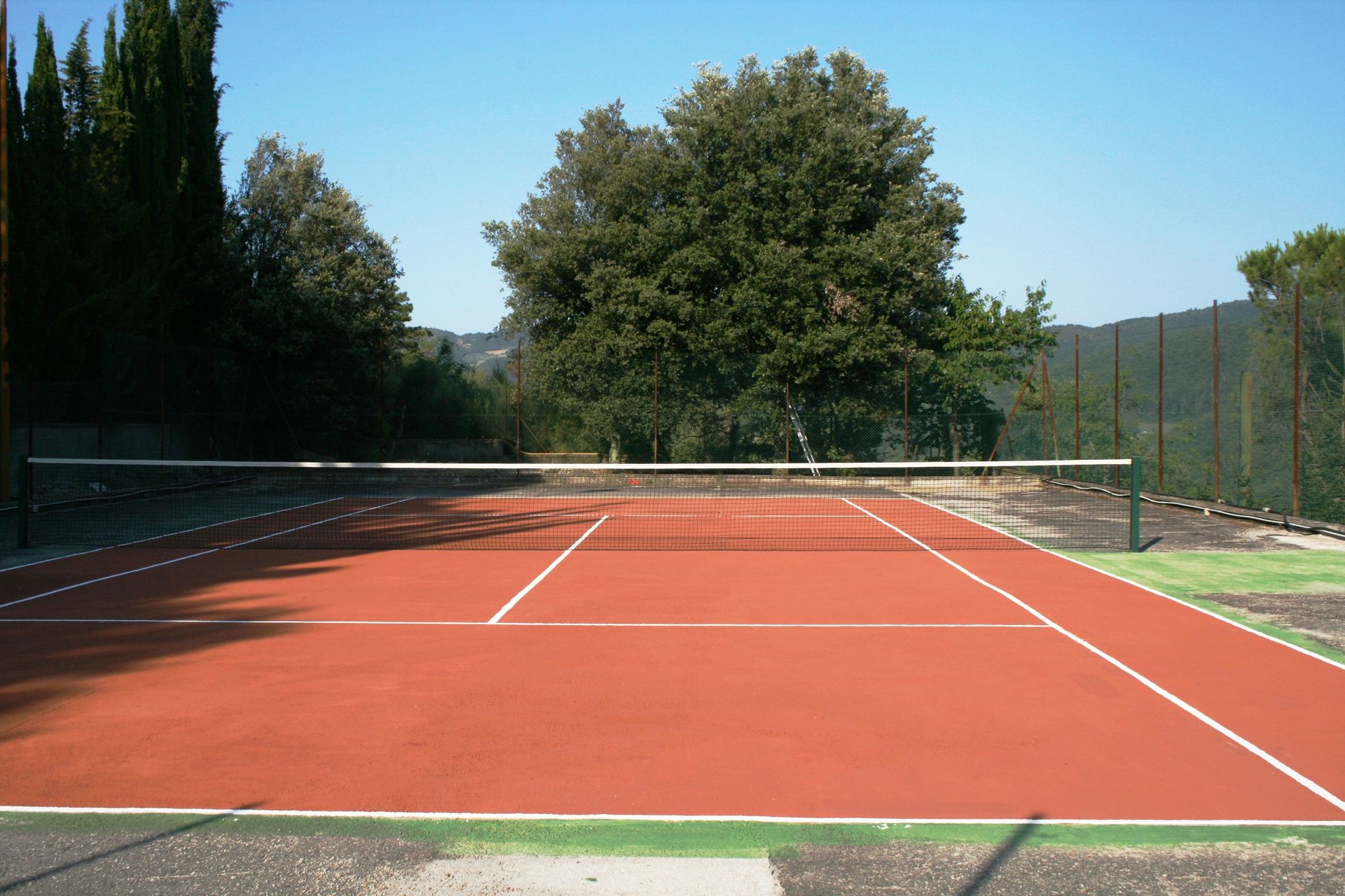 The bathrooms are simple, as shown in the pictures. This winter we repaired the floor of the pool,and we are planning to also repair the tennis court.