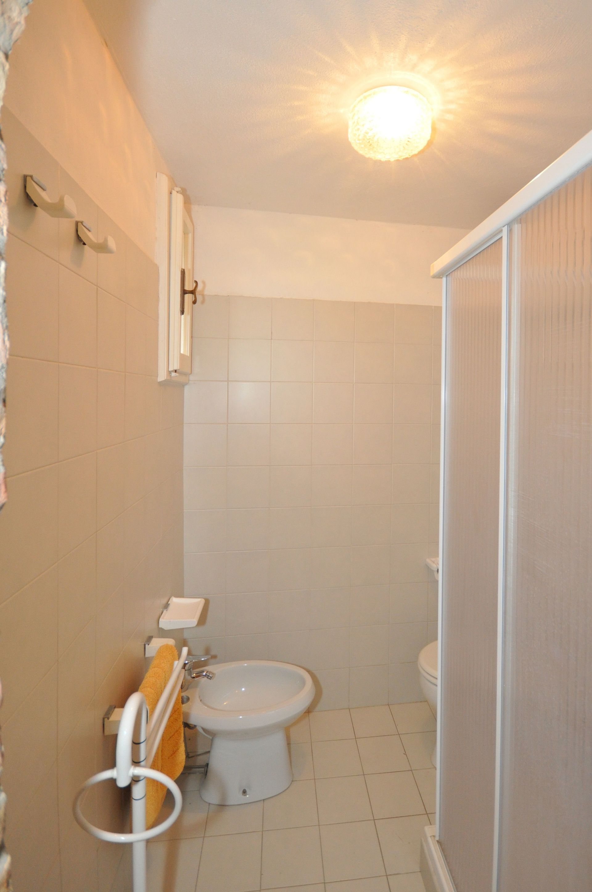 Ground floor: entrance onto dining area with kitchen corner (freezer), 2 bedrooms with 2 single beds each.