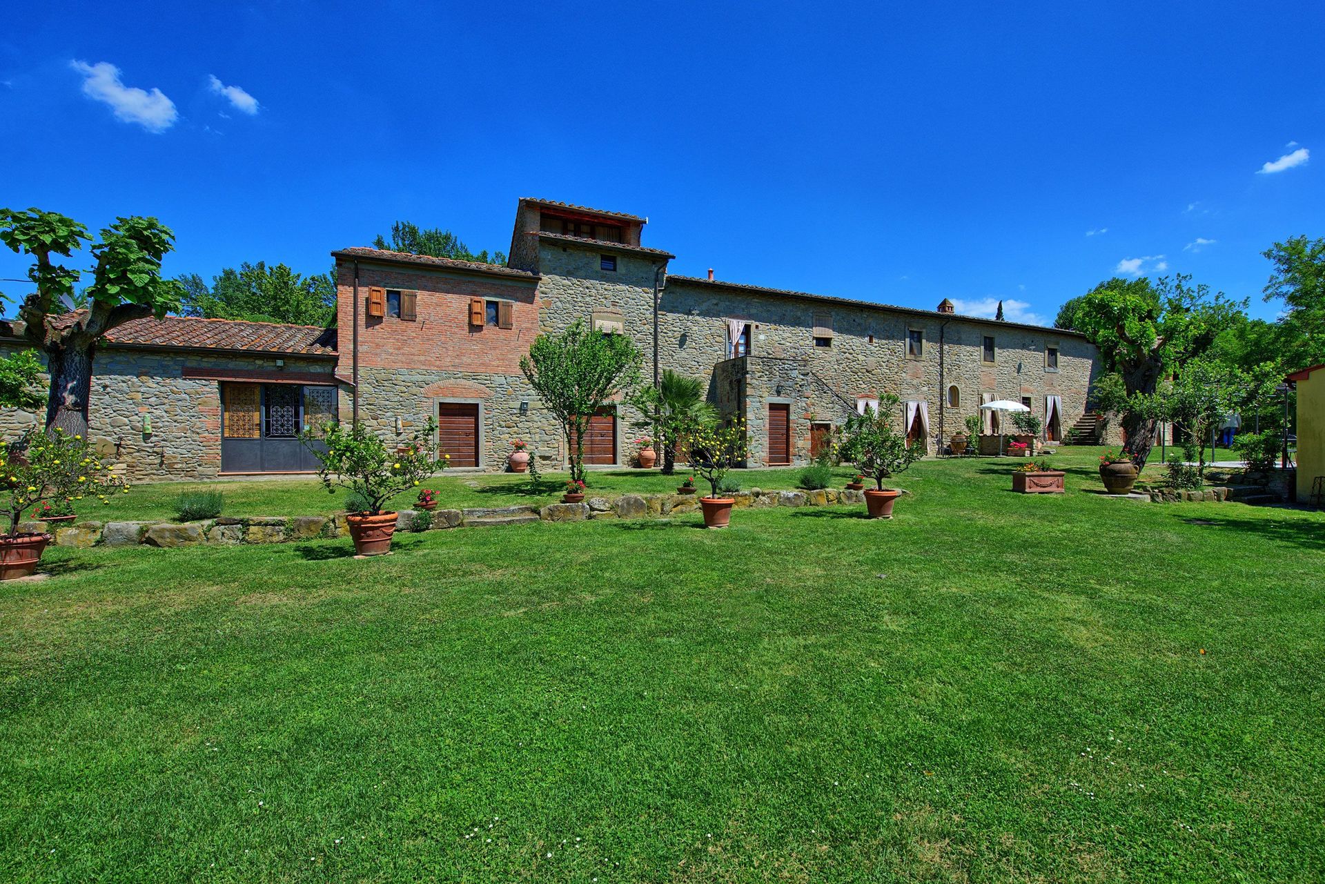 This ancient rural farm building has been finely restructured to form 4 comfortable apartments, which are available to be rented all together to a single group of friends or family. Located at the foot of the hill from which emerged beginnings of the famous city of Cortona, this property has a beautiful garden area that is well maintained and contains a swimming pool for the exclusive use of guests.