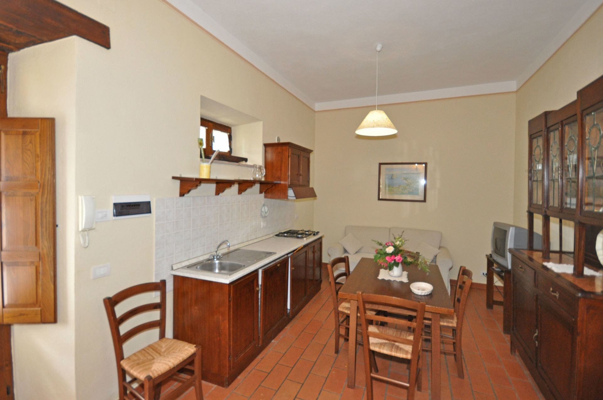 Just 2 km away lies the town of Camucia with a train station that allows for comfortable journeys to important towns within Tuscany and Umbria. A bus stop, which allows for easy reaching of the nearby towns, can be found just 100m from the property.