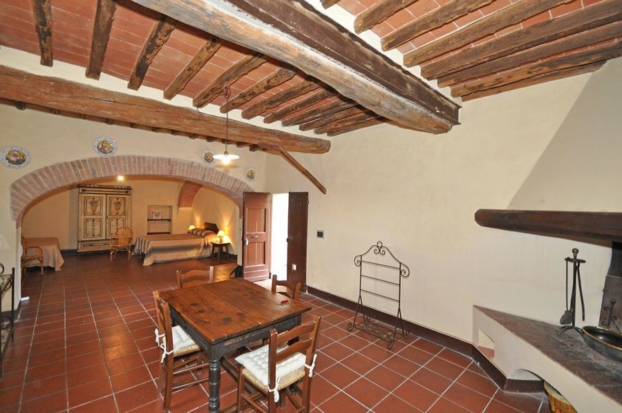 If you are looking for something impossibly pretty and romantic in a peaceful and remote location, few properties could be more perfectly suited than the endlessly charming Podere Monticchiello. Located in the famously gorgeous Orcia Valley and boasting views over the lush valleys of the area, 2km from the village of Monticchiello, this is an idyllic gem for those looking to get far away from the daily concerns and routines of life. A charming historic stone villa and out-buildings clustered among ancient trees and pretty pastures, the house looks like something from a storybook. Boasting eight bedrooms and nine bathrooms, the property is made up of a villa and annex that sleep up to sixteen comfortably in dreamy interiors that feature large rooms, a generous dining room, antique furniture, an original stove, several large fireplaces, exposed-beam ceilings, picture windows taking in the best views from the property, three different cosy living rooms, and three kitchen/living rooms, some bedrooms with canopy-draped four-poster beds, and more.