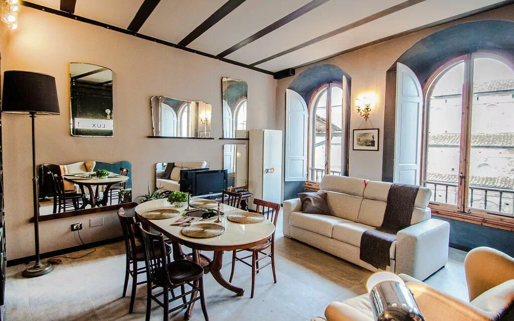Beautiful, historical apartment block "San Lorenzo", 4 storeys. In the centre of Firenze, in the district San Lorenzo, in the heart of the city, in a pedestrian area. Communal covered parking (extra) at 200 m. Shop, grocery 50 m, supermarket 200 m, restaurant 100 m, bar 50 m, bus stop "San Lorenzo" 65 m, railway station "Firenze Santa Maria Novella" 700 m. Nearby attractions: Basilica di San Lorenzo 10 m, Piazza del Duomo 270 m, Galleria dell'Accademia 550 m, Galleria degli Uffizi 850 m, Museo Nazionale del Bargello 850 m, Palazzo Pitti 1.3 km. Please note: car not advisable, no lift. Groups of teenagers on request only. The apartment is located in a zone with limited traffic. On request there is the possibility to book the two apartments for a group of eight people (The San Lorenzo and San Lorenzo II - our code IT5270.993.4).