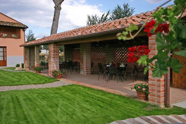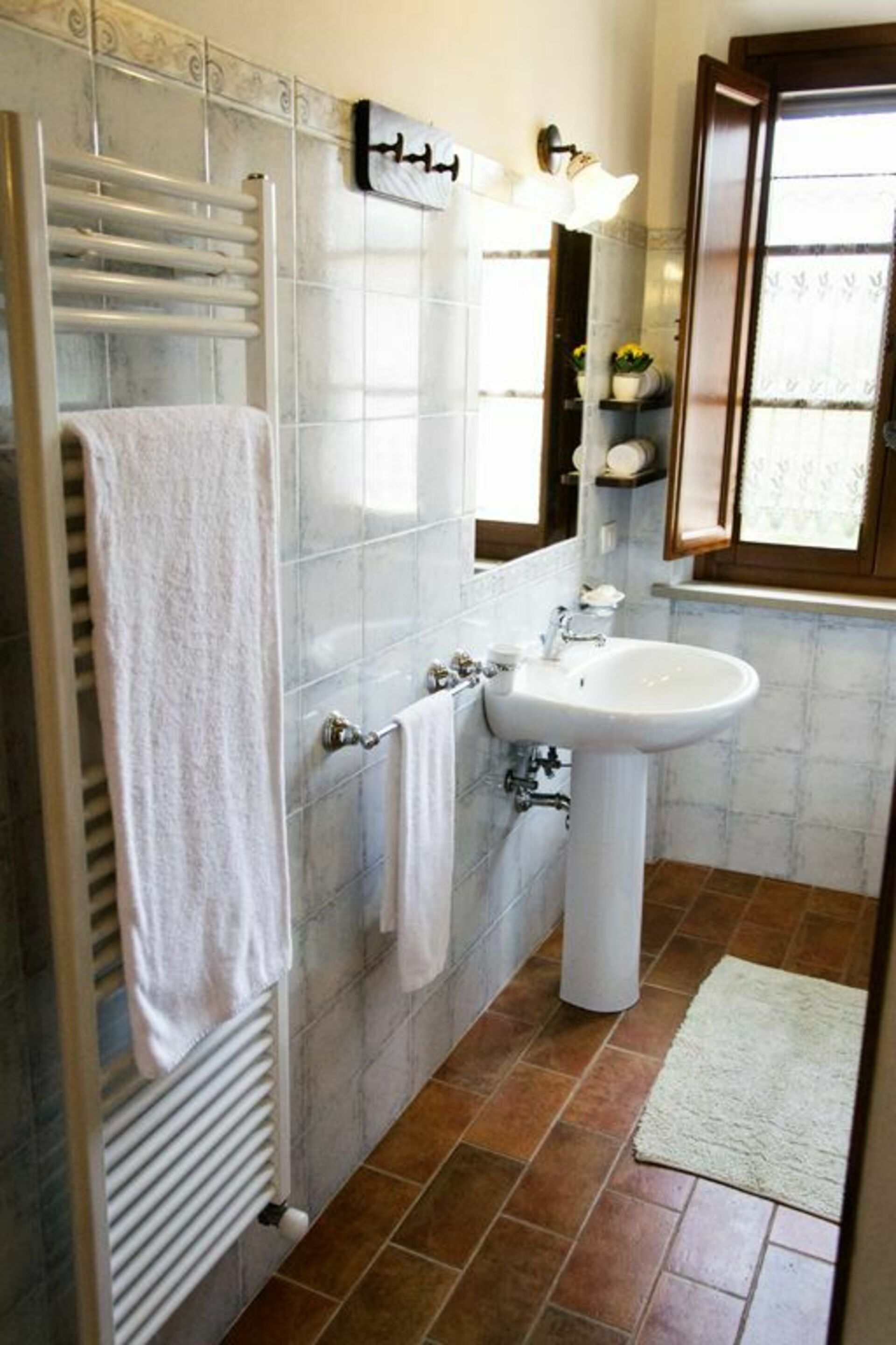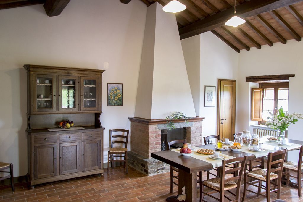 Going up, a stone staircase leads to this great apartment (80 sqm) on the first floor of the villa. It has an outside loggia overlooking the Tuscan countryside.