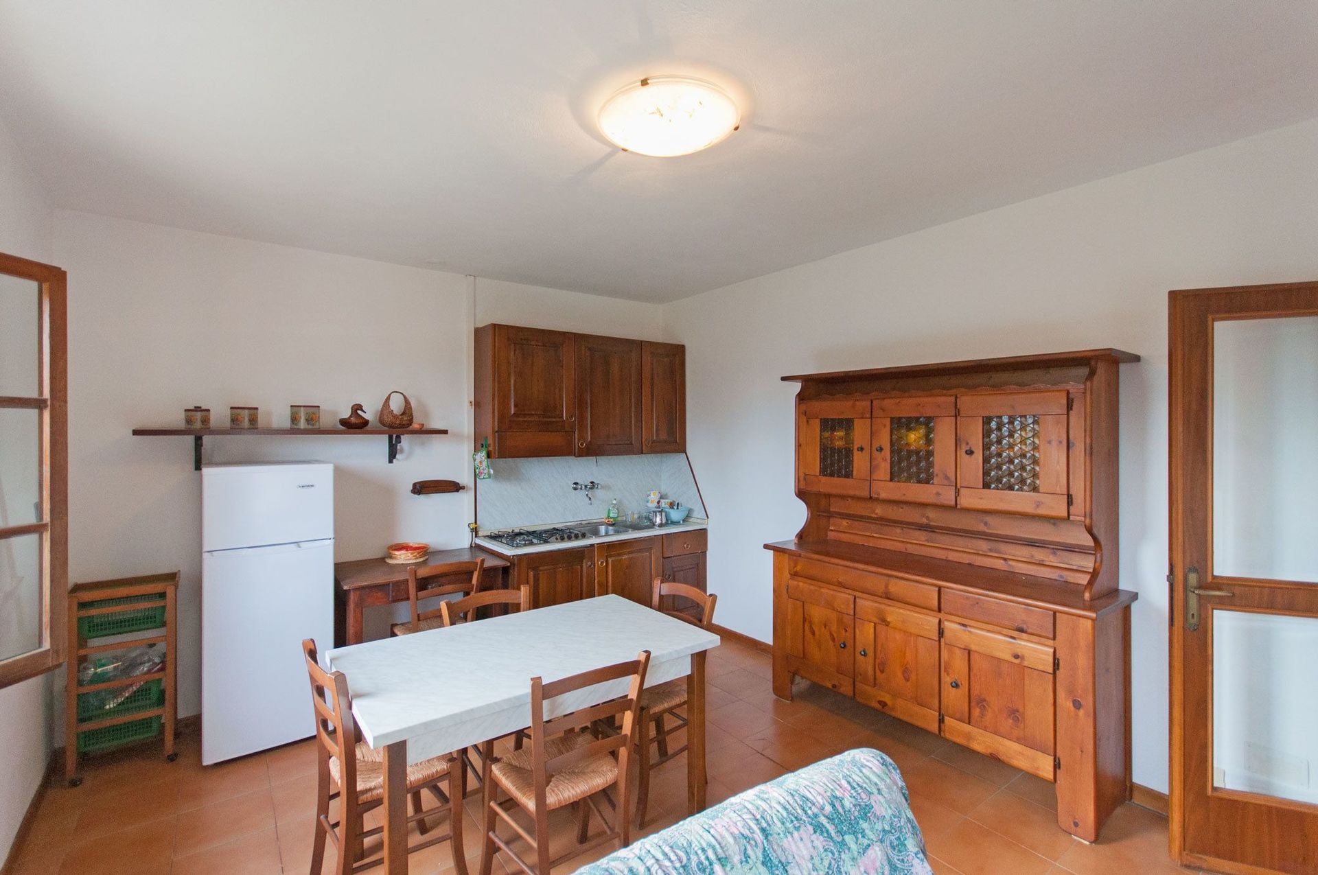 The apartments are furnished in a simple and rustic style.