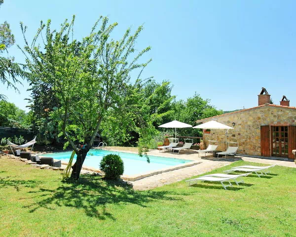 The outdoor spaces at Casale Verciano are thoughtfully designed to encourage leisure and enjoyment in a natural setting. The beautifully maintained garden, spanning the full extent of the fenced 5,000 m2 estate, provides a peaceful environment ideal for relaxing among the trees and open countryside. The private swimming pool, measuring 10 x 5 m with a depth of 140 cm, is available from 6 May to 30 September and is complemented by a dedicated WC in the pool area as well as an outdoor shower for the convenience of guests. Garden furniture is provided throughout the outdoor areas, creating comfortable spaces for sunbathing and unwinding. A barbecue is available for outdoor dining, and a volleyball area adds a recreational dimension to the exterior of the property. Adjacent to the swimming pool, there is a separate outbuilding equipped with a kitchen and living room, offering 2 sleeping possibilities. This additional space is particularly well suited for enjoying lunch in close proximity to the pool, making it a practical and pleasant extension of the outdoor living experience.