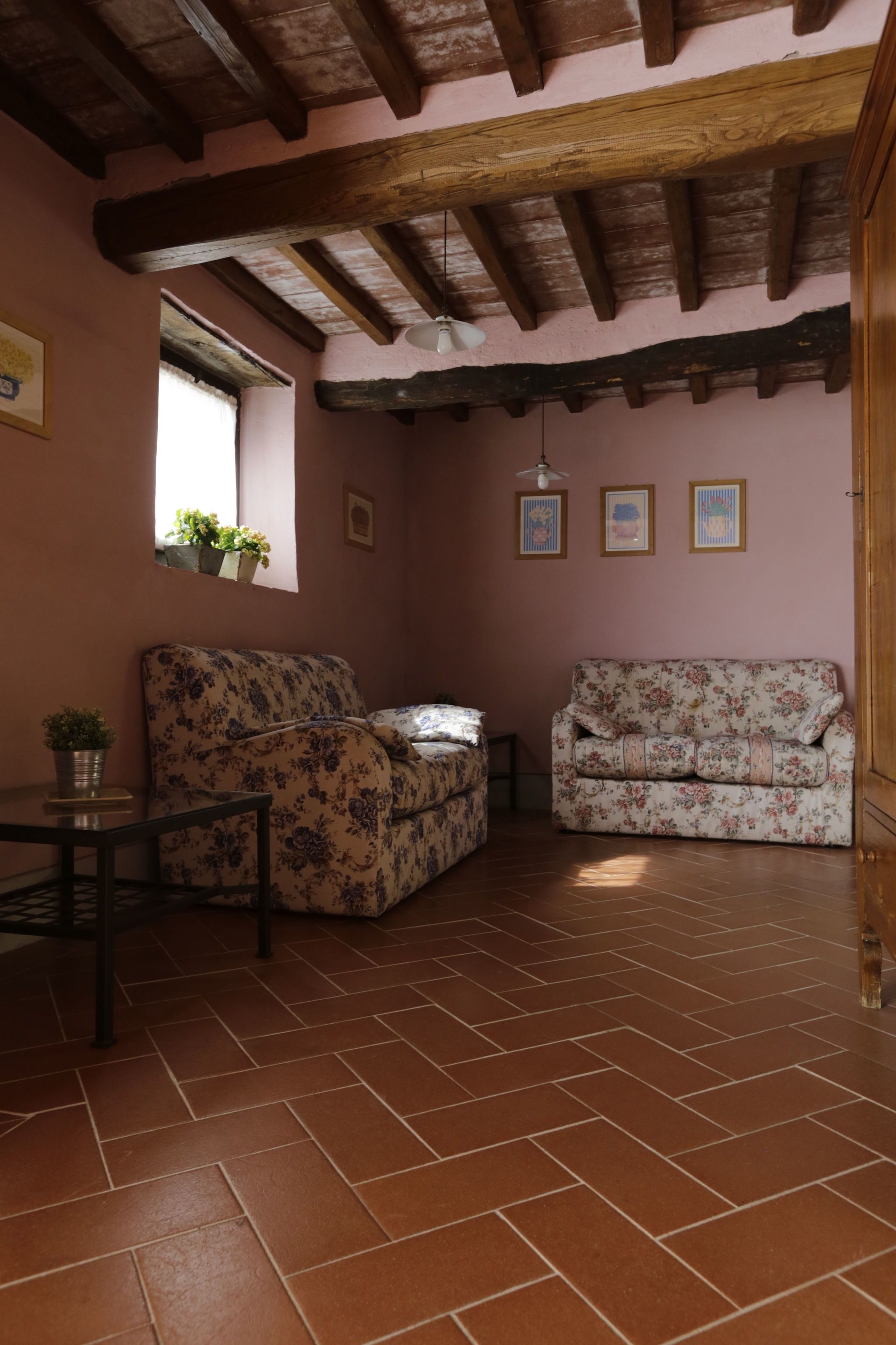 Il Fienile is indipendent villa ( 110 sqm )The entrance brings you into a large room with a high ceiling with wooden beams. At one end of this room there is a large typical Tuscan fireplace. In the room there is a wonderful wooden table for indoor meals.