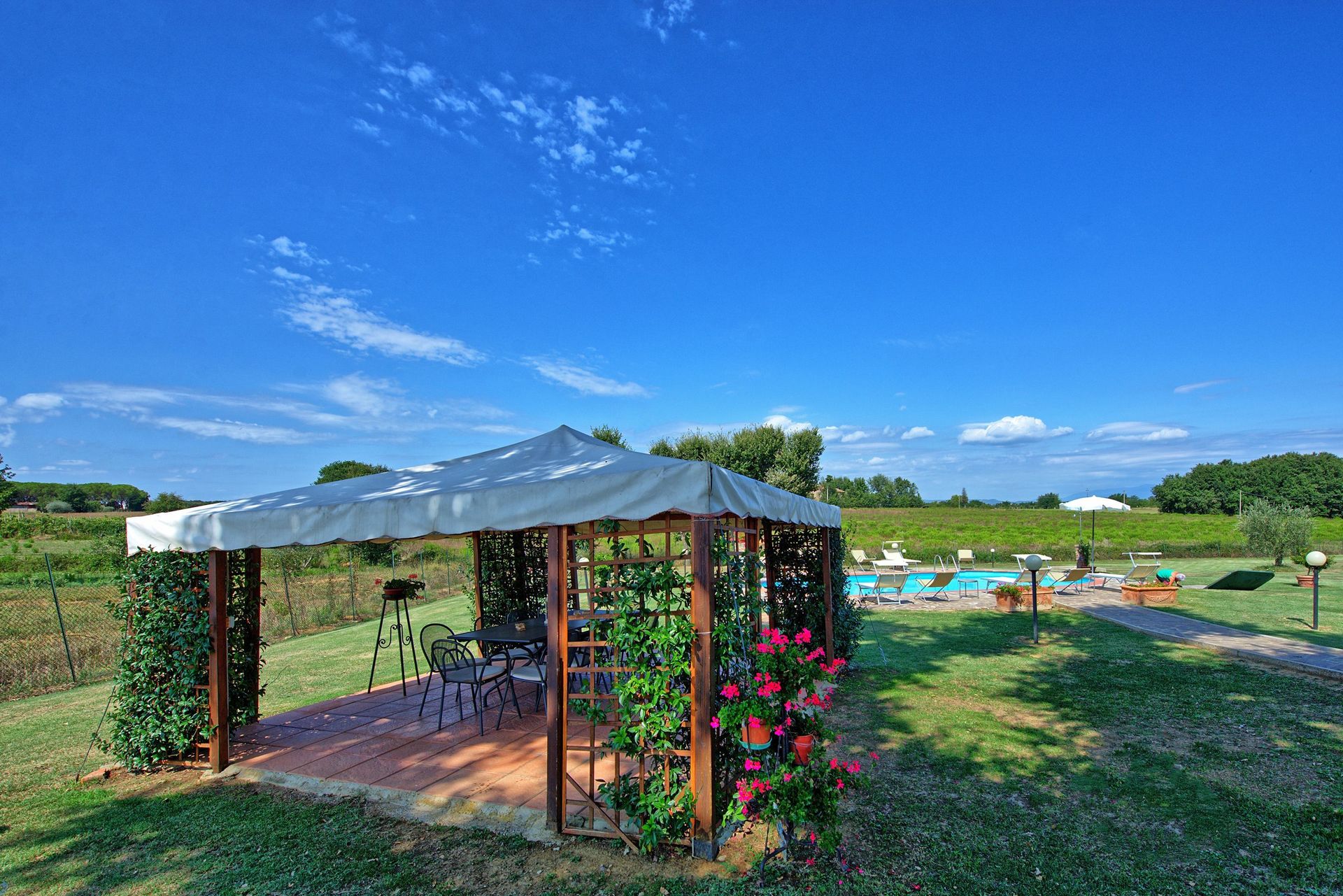 At guests’ disposal: large furnished garden, gazebo, barbecue, wood oven, private swimming pool for the exclusive use of the guests (size: 10mx5m; depth: 1,5m; open from 01/05 to 30/09), outdoor shower (cold water); baby cot; pets are allowed.