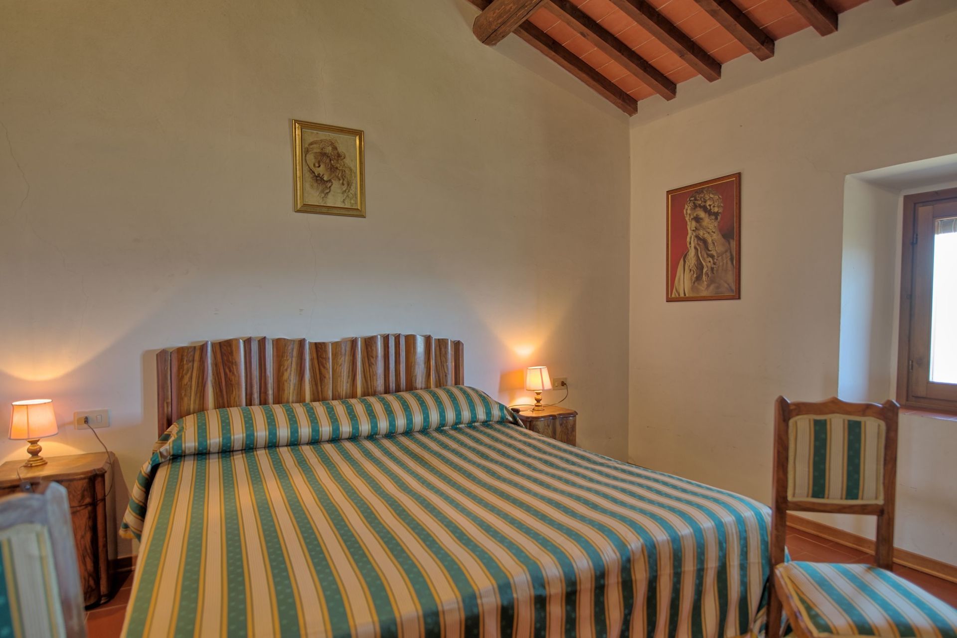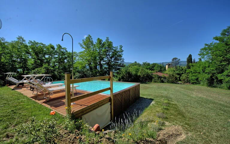 Spacious and comfortable holiday rental home with private pool located in the Tuscan countryside, close to Vicchio and just 35 km away from Florence. This holiday home is located just steps away from the house where the well known artist Giotto was born. Among the most famous Giotto’s artworks, these need a special mention: "Cappella degli Scrovegni” (in Padova), "Basilica inferiore" in Assisi, "Cappella Bardi e Peruzzi” in Florence, bell tower of "Duomo di Firenze". This villa is perfect for a large groups. The owners live in one small apartment with independent entrance located at the edge of the property and are always on hand should the guests require cooking classes, homemade fresh food, chef service or tourist information. Outside, guests can enjoy extensive gardens with pool, private dining outdoor areas and panoramic views over the countryside and on the Mount Falterona (where the springs of Arno River are located). A private swimming pool is available for the exclusive use of the guests and is surrounded by extensive sunbathing areas.