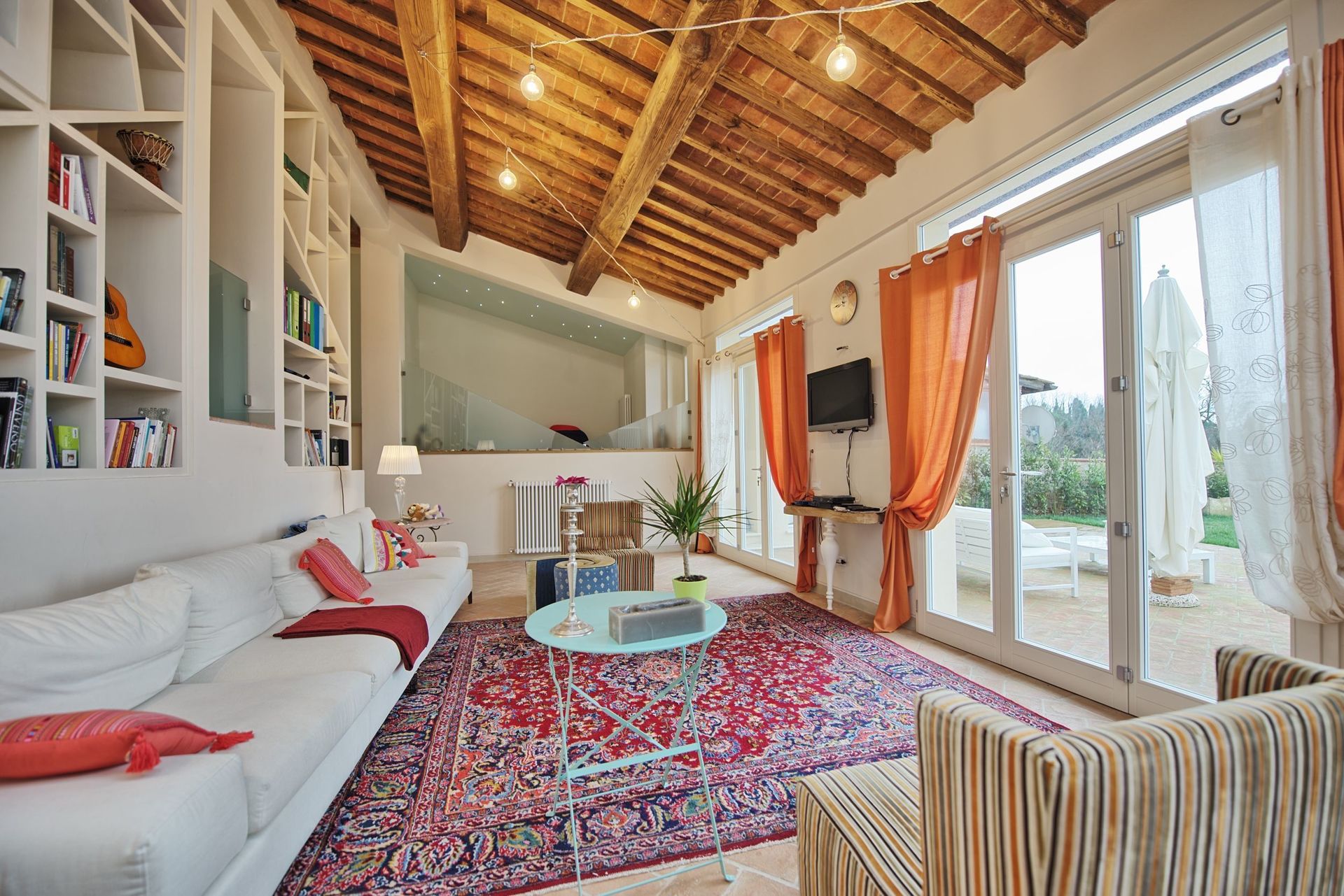 Inside, the property has been stylishly renovated to maintain its character and charm, yet with all the modern facilities and comforts for a pleasant holiday: the lounge, for example, offers an impressive raised relaxation area with a large bathtub.