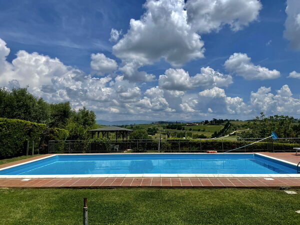 The scenery of this place is just amazing. The pool has a great view, there are sunbeds and chairs, and the hostess Paola is super friendly. We got a welcome drink, we could use their wood for the fireplace, and she helped with making a reservation at a restaurant. Only downside is that there are no restaurants nearby, so you always have to drive to a place. Paola can help with a cab (return San Gimignano for six people costs €100)