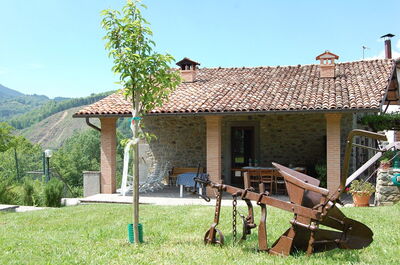 This property is one of two stylish barn conversions next to the owners house. It is simply but comfortably furnished for six people (except there was only seating in the lounge area for four). The building is cut into the hillside with the bedrooms downstairs. This no doubt keeps them nice and cool in summer, but when we were there they suffered from damp despite central heating. Castelnuovo has all amenities and is very central for the Garfanana region, but bear in mind the property is a quarter of a mile up a steep and narrow poorly surfaced lane, but by the same token has spectacular views of the mountaneous countryside around. We particularly liked the roofed terrace area at the rear of the property for sunbathing and al fresco meals. The log fire came in useful on cool October nights and Paulo kindly supplied logs for us.