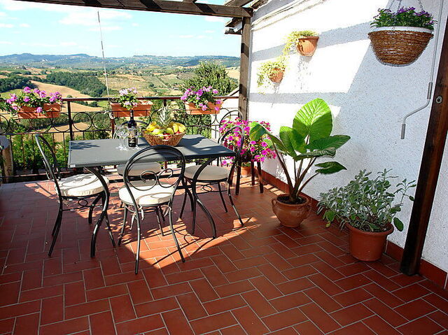 Tolle Dachterrasse mit schönem Blick. Ruhiges Schlafzimmer, große Wohnküche. Mitten in Vico, einem schönen toskanischen Dorf abseits der Touristenströme.