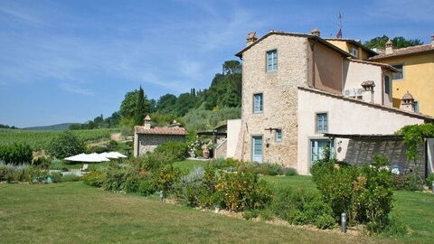 [English translation courtesy of Easy Reserve] Hello, we have stayed two weeks in August 2011 in the BLUE house. The temperature during these two weeks was over 30°C every day. La Marronaia is located about 2 km outside the charming town San Gimignano, Tuscany where it's at its best. It's lovely rural life among the vineyards and olive groves. The houses are spacious with practical furnishings. There are only three apartments, so it is quiet. There is a large swimming pool for the necessary cooling. Each cottage also has outdoor furniture. Silvia and Luigi, the Italian owners, live above the apartment with their family, two dogs and 13 cats. They are really very hospitable, we felt very welcome and at home.