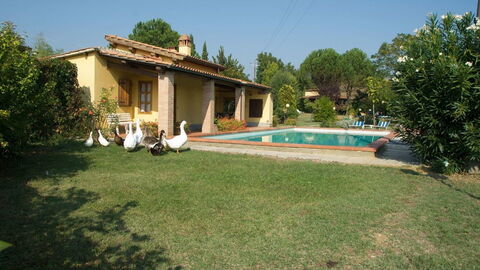 Used to high standards 4 to 5 star hotels the two of us (Swiss) decided to rent a house in Tuscany. We immediately felt at ease. Upon our arrival the owners were very welcome and described us the property. Everything is at disposal in the kitchen, the bathroom and the bedroom. All very clean and taken care of. At disposal a huge barbecue and wood upon demand without extra payment. Just fabulous. We came beginning of October and the pool was still open and lighten up from 8pm till 2 am. Pool and surroundings of the property are cleaned daily !!!